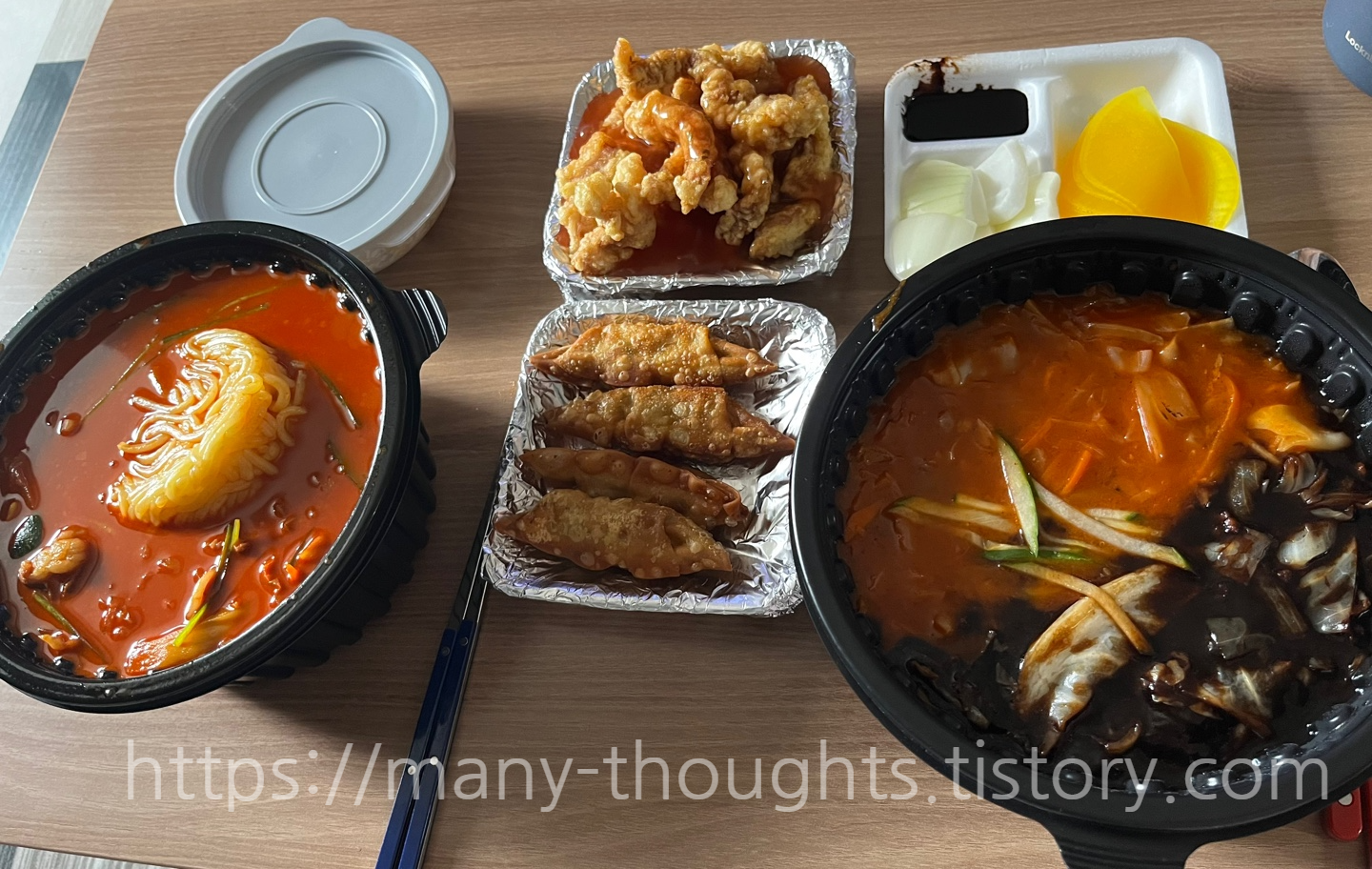 이따금씩 먹게 되는 중국집 음식.확실히 매장에 방문하여 먹는 것이 최고인데해장이 필요 할 때는 배달로!진짜 가 보고 싶었던 곳이었는데방문은 어렵고 생각난 김에 주문 해 보았습니다유~제일 궁금했던 비벼먹는 짬짜장:)솔직히 냄새로 맛 가늠이 안 되어서어떤 맛 일지 진짜 궁금했는데역시나 배달은 ㅠㅠ면이 떡져서 비비기 힘들었음!하지만 열심히 비벼 한 젓가락 먹어보니정말 먹어 본 적 없는 맛.그래도 대략 이런 맛 이겠지? 생각했지만그냥 아무 생각이 안나는 맛이다;예전에 중화비빔밥이 그렇게 궁금했는데생각보다 맛 있었다! 이런 느낌이라면이 음식은 아~ 이런 맛을 내는 구나~ 정도?맛이 강하지 않아서 그럴지도 모르겠다.이 집은 짬뽕이 메인인거 같기도!맑은 국물과 걸죽한 국물의 진짜 중간이면서첫 맛은 못 느끼다가 갈 수..